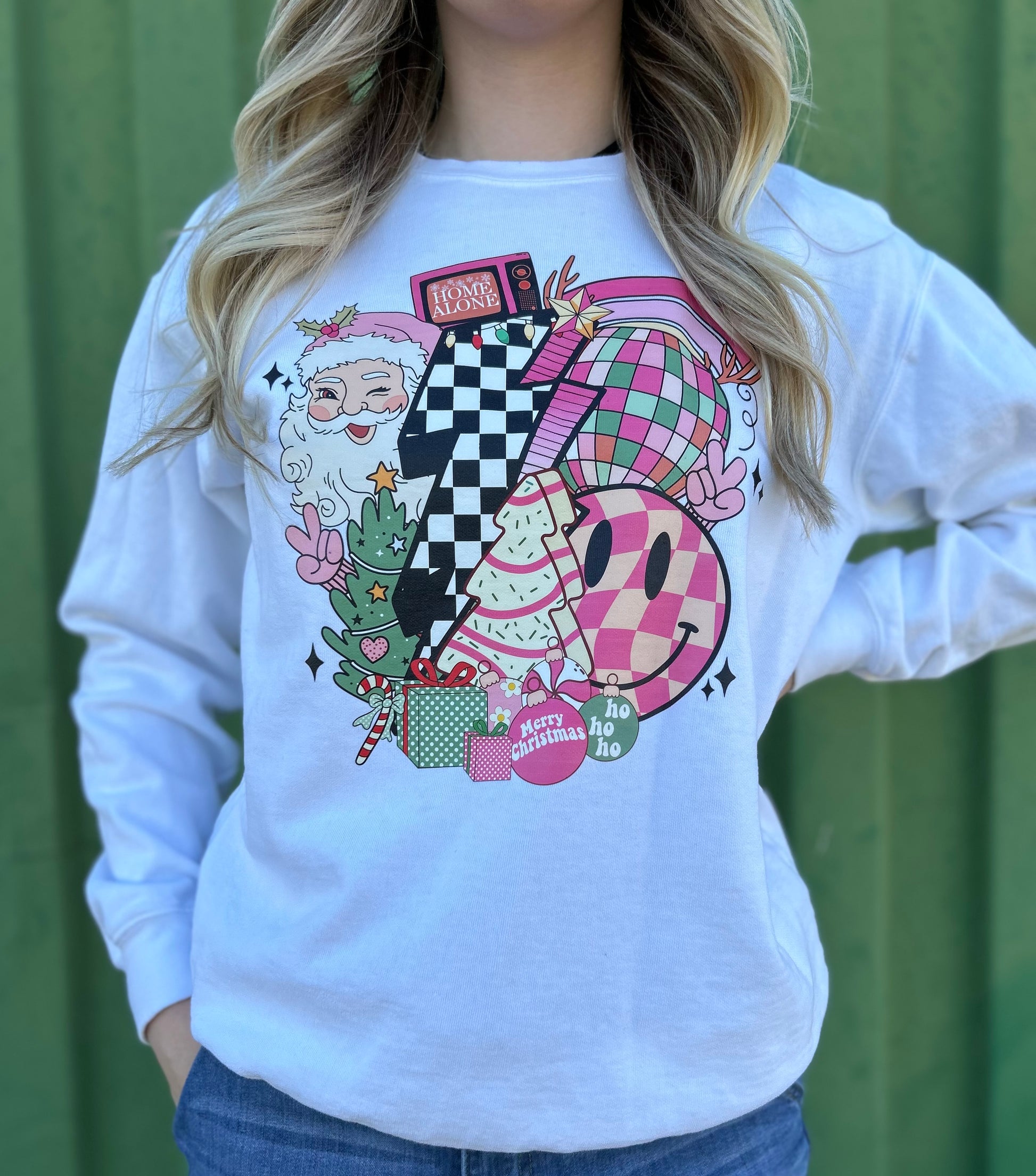 This pink Christmas sweater is sure to make you the life of the party! made with the softest materials, this cute sweater will keep you warm and cozy while adding a festive touch to your holiday outfit.