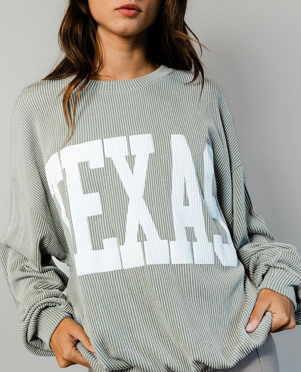 Add some Texas charm to your wardrobe with our sage green oversized comfy sweater. Perfect for staying cozy and stylish on chilly days.